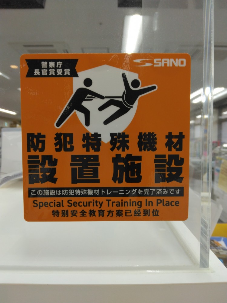 館内には警察庁長官賞を受賞した特殊さすまたを設置しています
