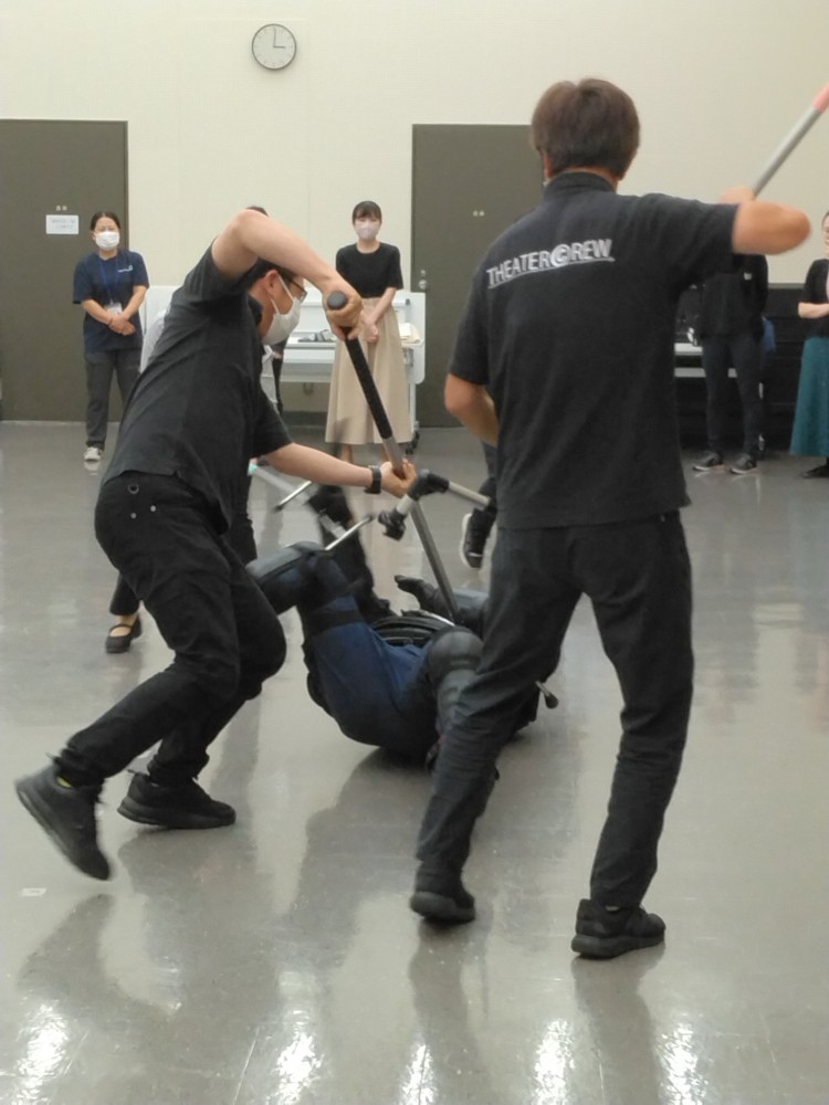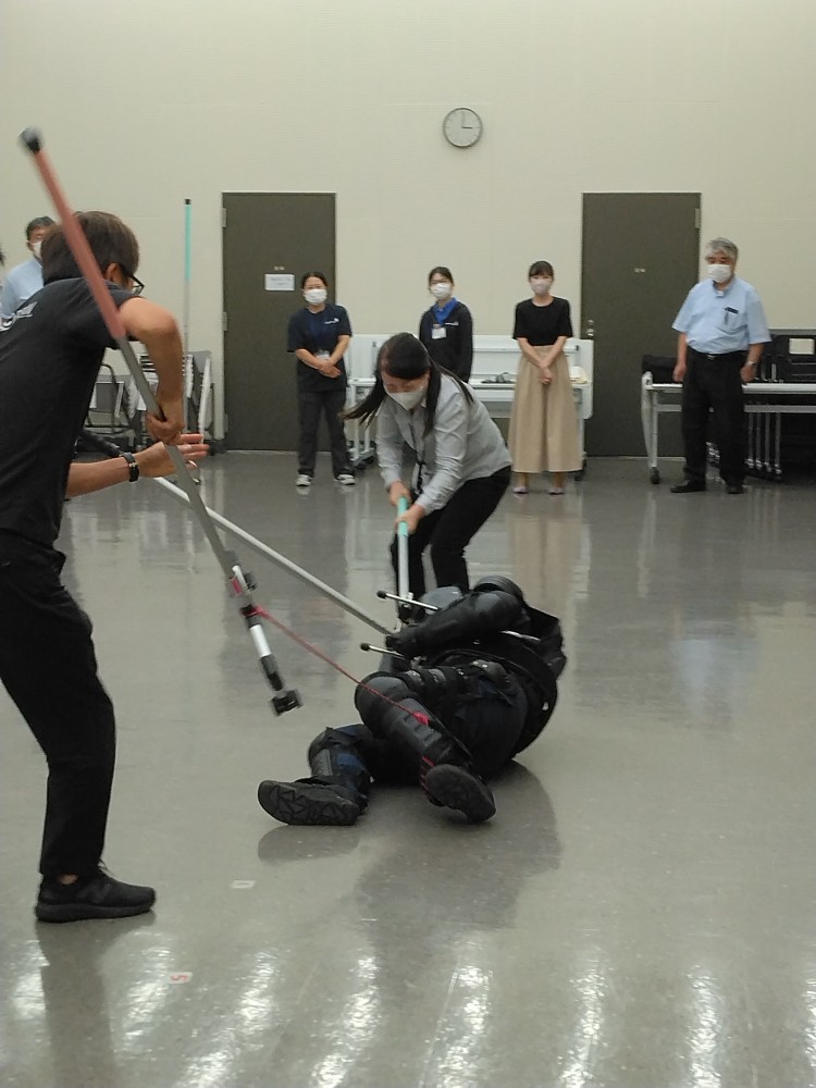 さすまたを使用した不審者制圧訓練の様子